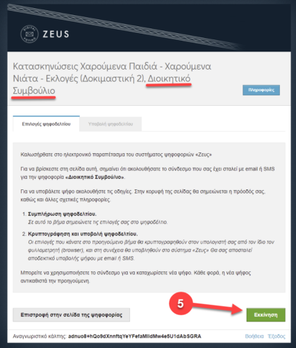 5. Ξεκινάτε από την κάλπη για το Διοικητικό Συμβούλιο. Κάντε κλικ στο πράσινο κουμπί “Εκκίνηση” για να προχωρήσετε.