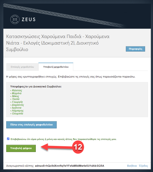 12. Το κουμπί “Υποβολή Ψήφου” έχει γίνει πλέον πράσινο. Κάντε κλικ εκεί ώστε να οριστικοποιήσετε την ψήφο σας.