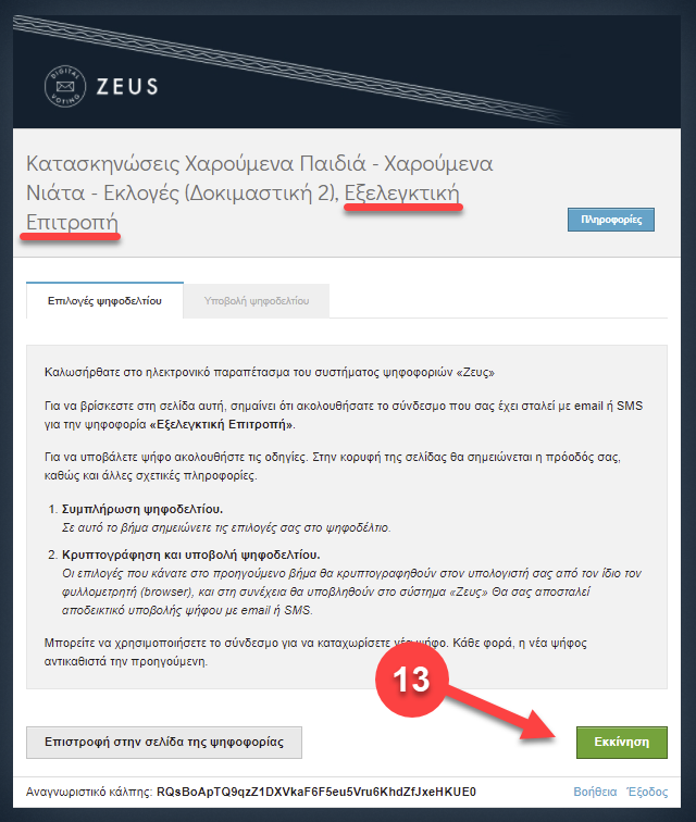 5. Ξεκινάτε από την κάλπη για το Διοικητικό Συμβούλιο. Κάντε κλικ στο πράσινο κουμπί “Εκκίνηση” για να προχωρήσετε.