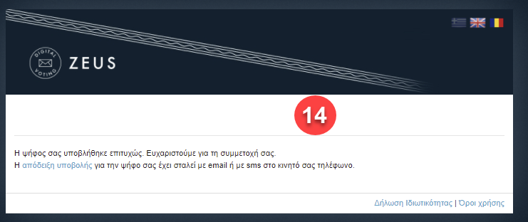 14. Μόλις υποβάλλεται την ψήφο σας και για την εξελεγκτική επιτροπή, έχετε πλέον ολοκληρώσει τη διαδικασία. Το σύστημα πρέπει να σας δείξει την παρακάτω εικόνα.