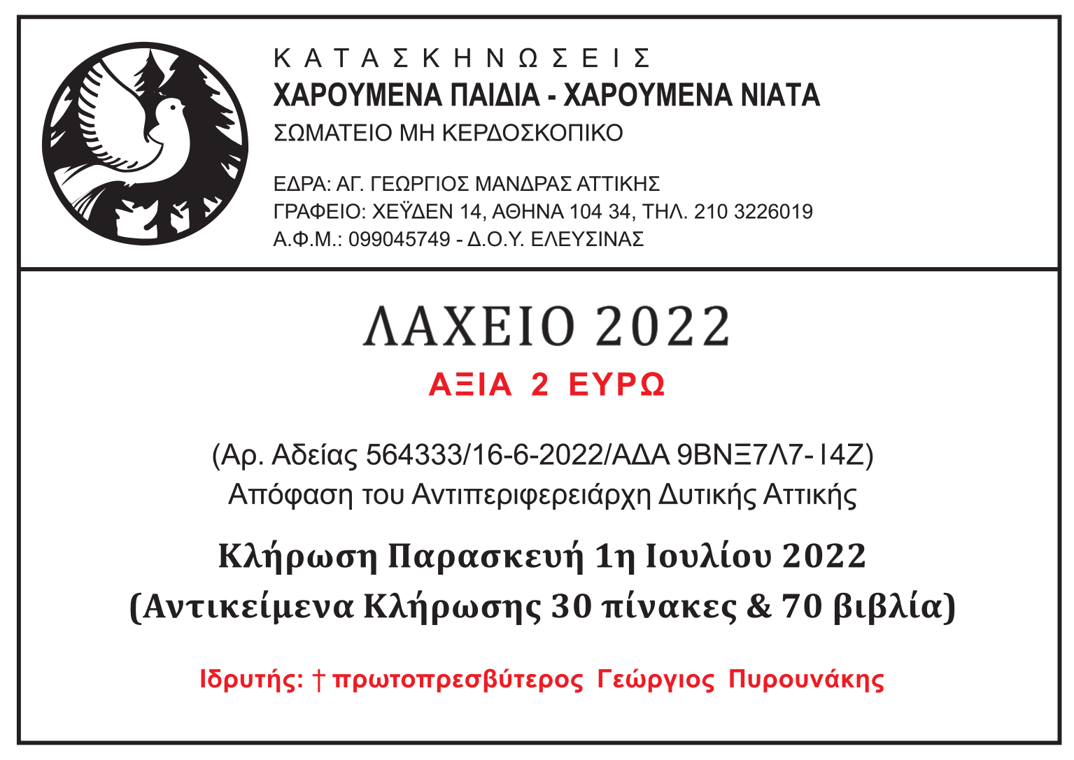 Κάθε λαχνός κοστίζει 2 ευρώ.